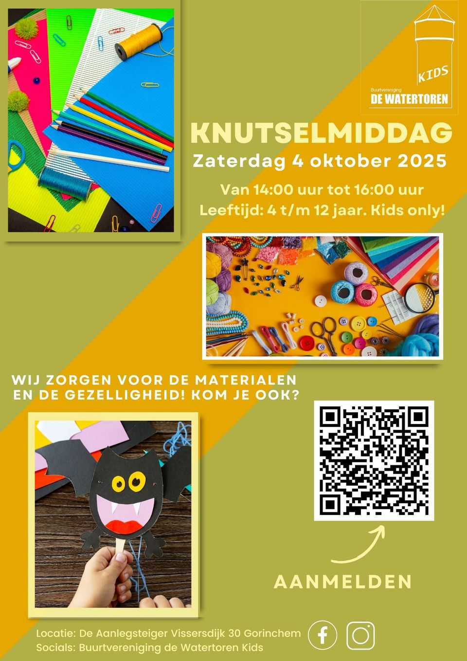 Op zaterdag 4 oktober 2025 organiseren wij Buurtvereniging De Watertoren Kids een gezellige Knutselmiddag speciaal voor kinderen van 4 t/m 12 jaar.