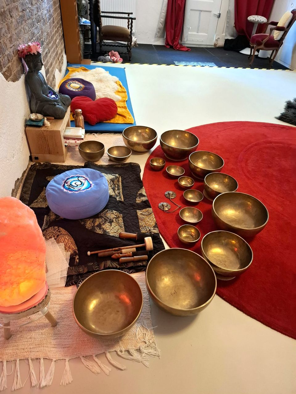 Anneke bespeelt haar 7 klankschalen, die handmatig in Nepal zijn afgestemd op je 7 chakra's. Ze heeft ze persoonlijk daarvandaan meegebracht na een professionele cursus.