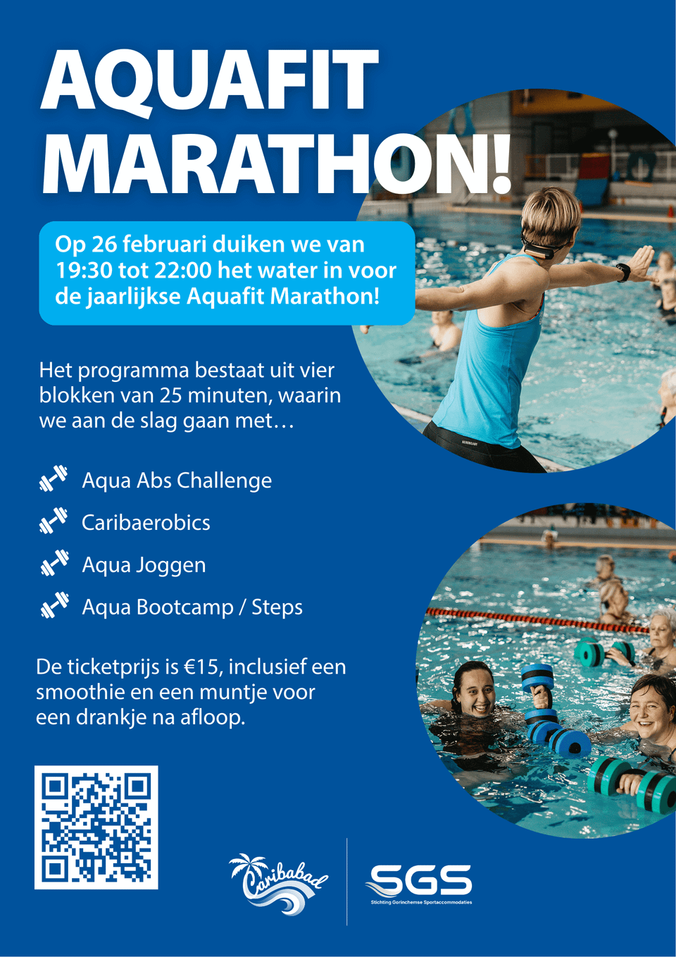 Op donderdag 26 februari 2026 organiseert het Caribabad weer de jaarlijkse Aquafit marathon. Van 19:30 tot 22:00 kunnen deelnemers genieten van een sportieve en gezellige avond in het water.