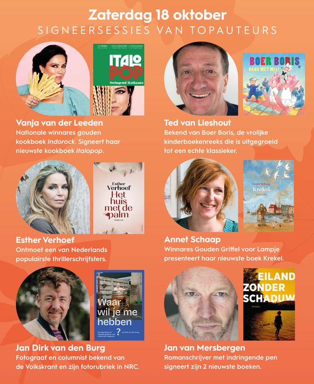 Van thrillers tot kinderboeken, van kookkunst tot poëzie: het wordt een dag vol inspiratie voor jong en oud.