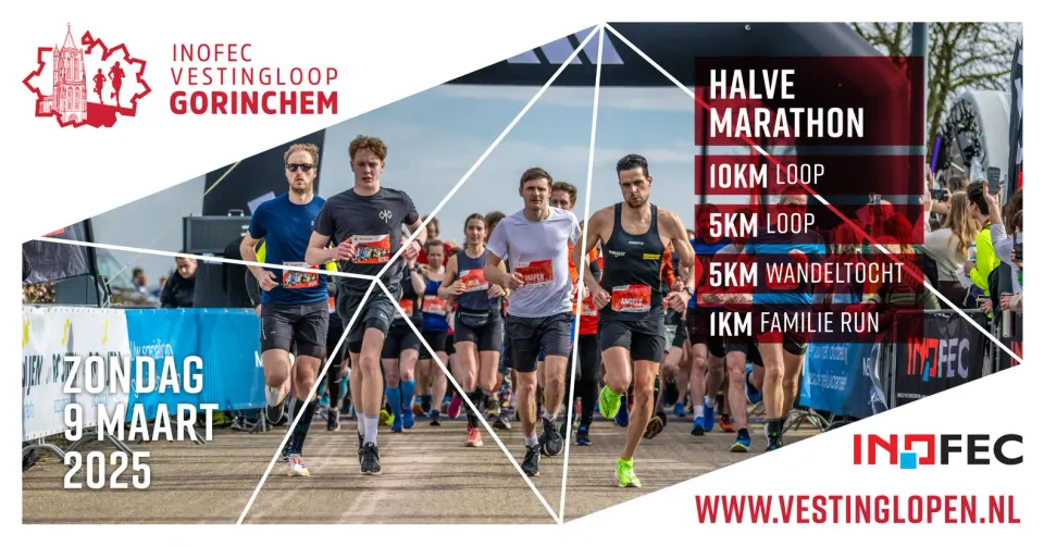 Doe mee aan de vijfde editie van de Inofec Vestingloop, een hardloopevenement voor alle leeftijden en niveaus. Kies uit de 1 km Familieloop, 5 km, 10 km of de Halve Marathon. Voor wandelliefhebbers is er een 5 km wandeltocht over de historische vestingwallen. De start en finish bevinden zich in het Wilhelminapark. Inschrijven kan tot en met 8 maart 2025.